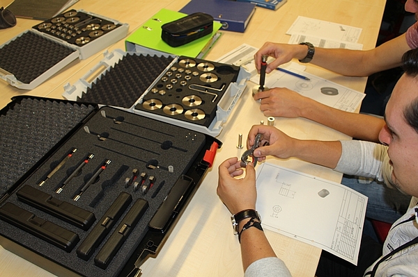 Mit den Koffern sind Partner- oder Gruppenarbeiten möglich, in denen der Umgang mit Messchieber, Bügelmessschraube, Grenzlehrdorn und Grenzrachenlehre geübt werden können. Von jedem Prüfkörper sind mindestens acht - auf den ersten Blick identische - Bauteile vorhanden. Erst duch das Messen und Lehren ist ein Unterschied zu erkennnen. Die Ergebnisse der Prüfungen werden in Tabellen übertragen und Entscheidungen getroffen, ob ein Bauteil Gut, Ausschuss oder Nacharbeit ist.